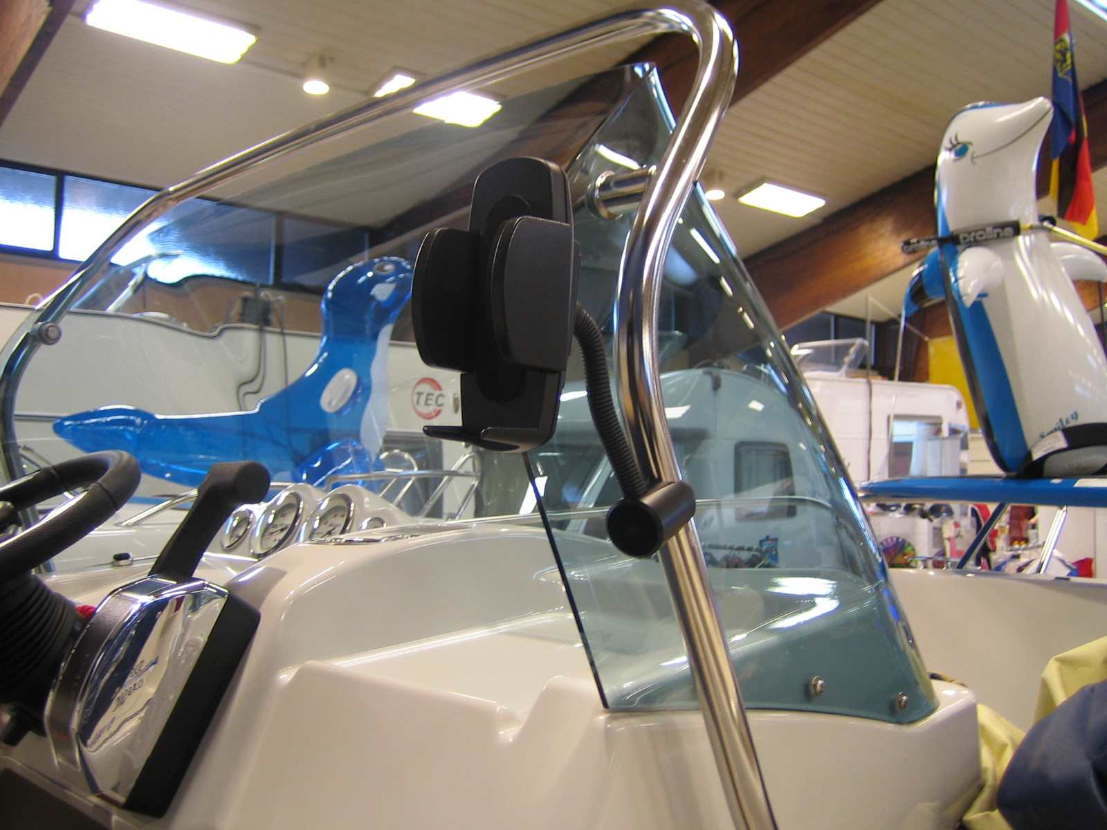 Mit einem Klick können alle Handgeräte an den Edelstahlrohren die sich an Bord befinden, befestigt werden.
